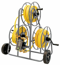È dotato di 3 rulli avvolgitubo indipendenti, ognuno con un proprio canale di alimentazione, e di un programmatore automatico installato sul telaio che permette di gestire i 2 tubi avvolti sui rulli inferiori con programmi temporizzati. Il tubo avvolto sul terzo rullo è alimentato direttamente e non viene gestito dalla centralina, per garantire un buon flusso di acqua in qualsiasi momento.