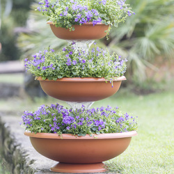 Entrambe sono composte da tre grandi vasi circolari, man mano più piccoli a salire 50, 40, 30 cm, in grado di contenere fiori e piante di diversa specie.