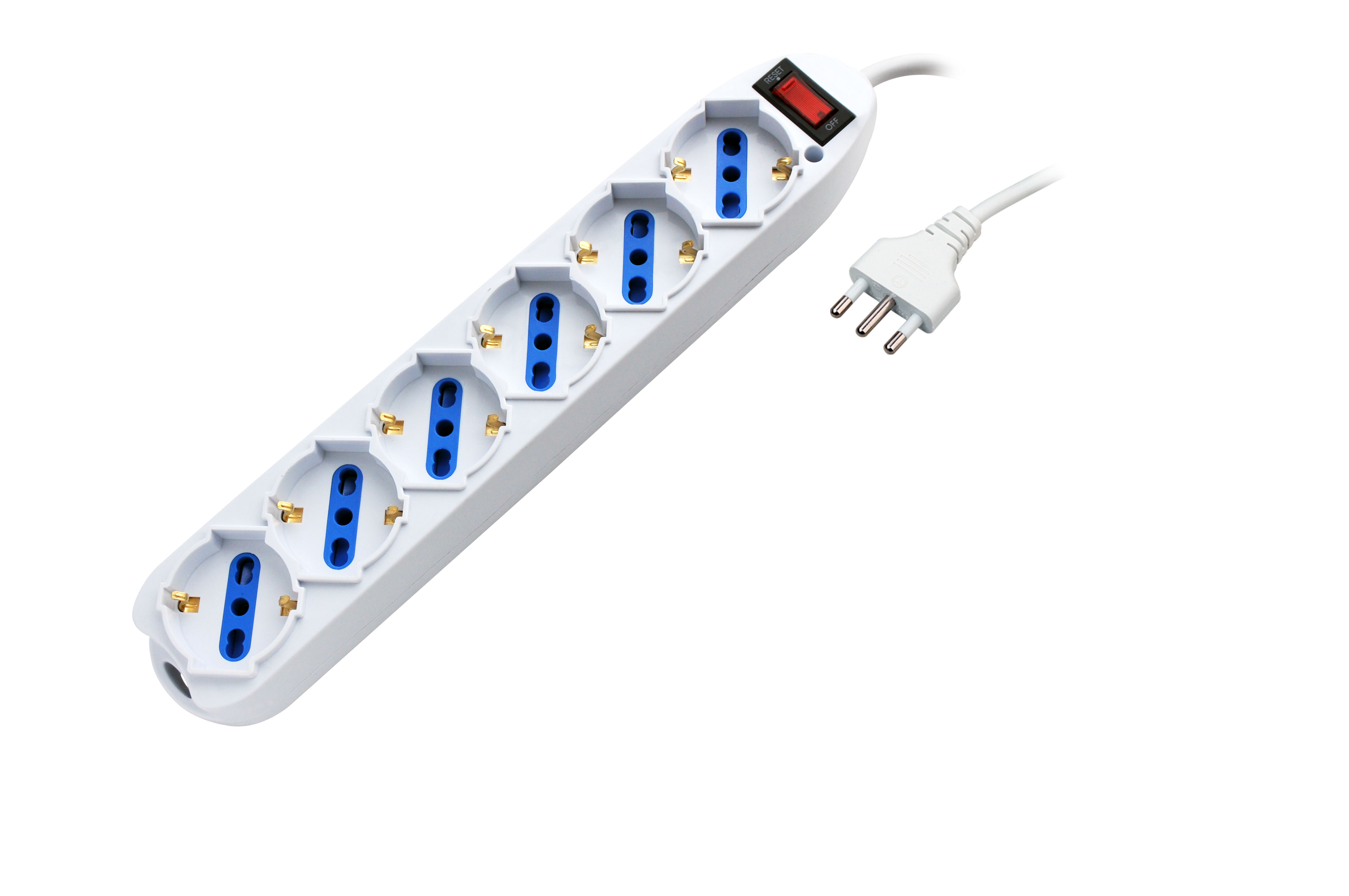Tanti cavi da collegare? Dal catalogo di Mistral c’è la multipresa (art. 131081) con 6 uscite universali.