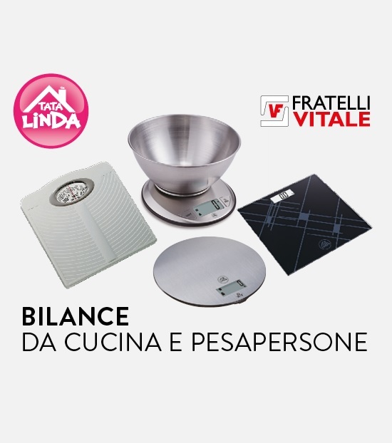Per quanto riguarda le bilance pesapersone, Tata Linda propone un modello meccanico con ampia piattaforma antiscivolo e portata massima di 120 kg, disponibile in due varianti di colore. Completano l’assortimento i due modelli elettronici con display LCD retroilluminato, portata massima di 180 kg e indicatore di batteria scarica e sovraccarico, disponibili nei modelli in vetro temperato nero, bianco o con piattaforma in acciaio inox.