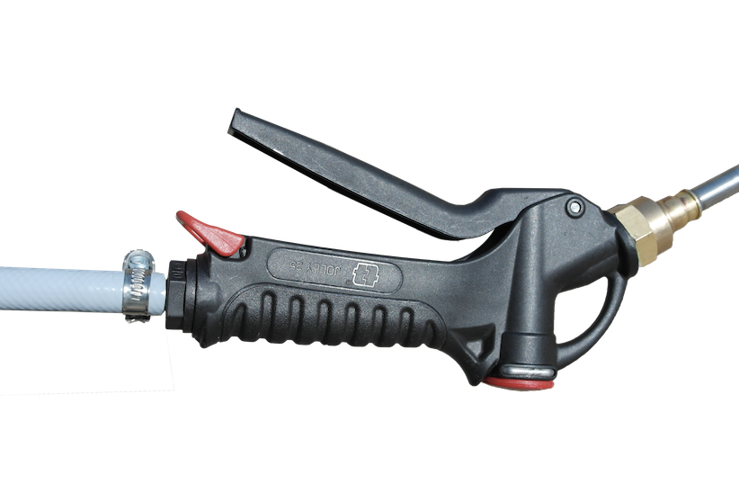 Il carrello di serie è fornito con una lancia professionale e dieci metri di tubo.