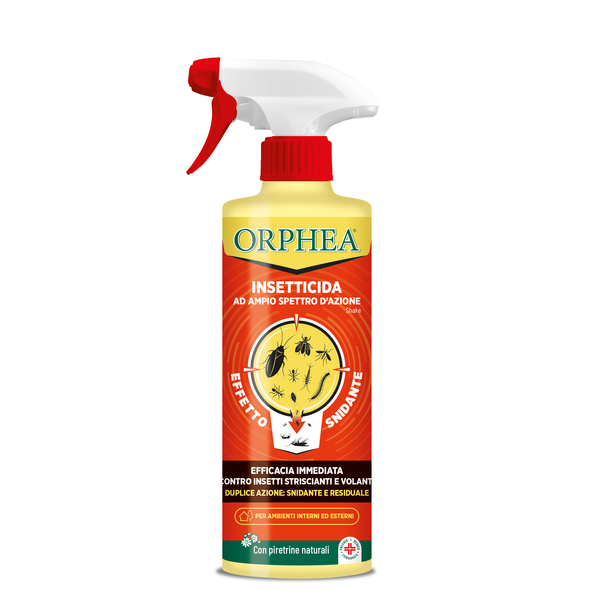 Orphea Insetticida Multinsetto Shake è in grado di eliminare diverse tipologie di insetti come formiche, scarafaggi, centopiedi, pesciolini d’argento, mosche, zanzare, acari e pulci.