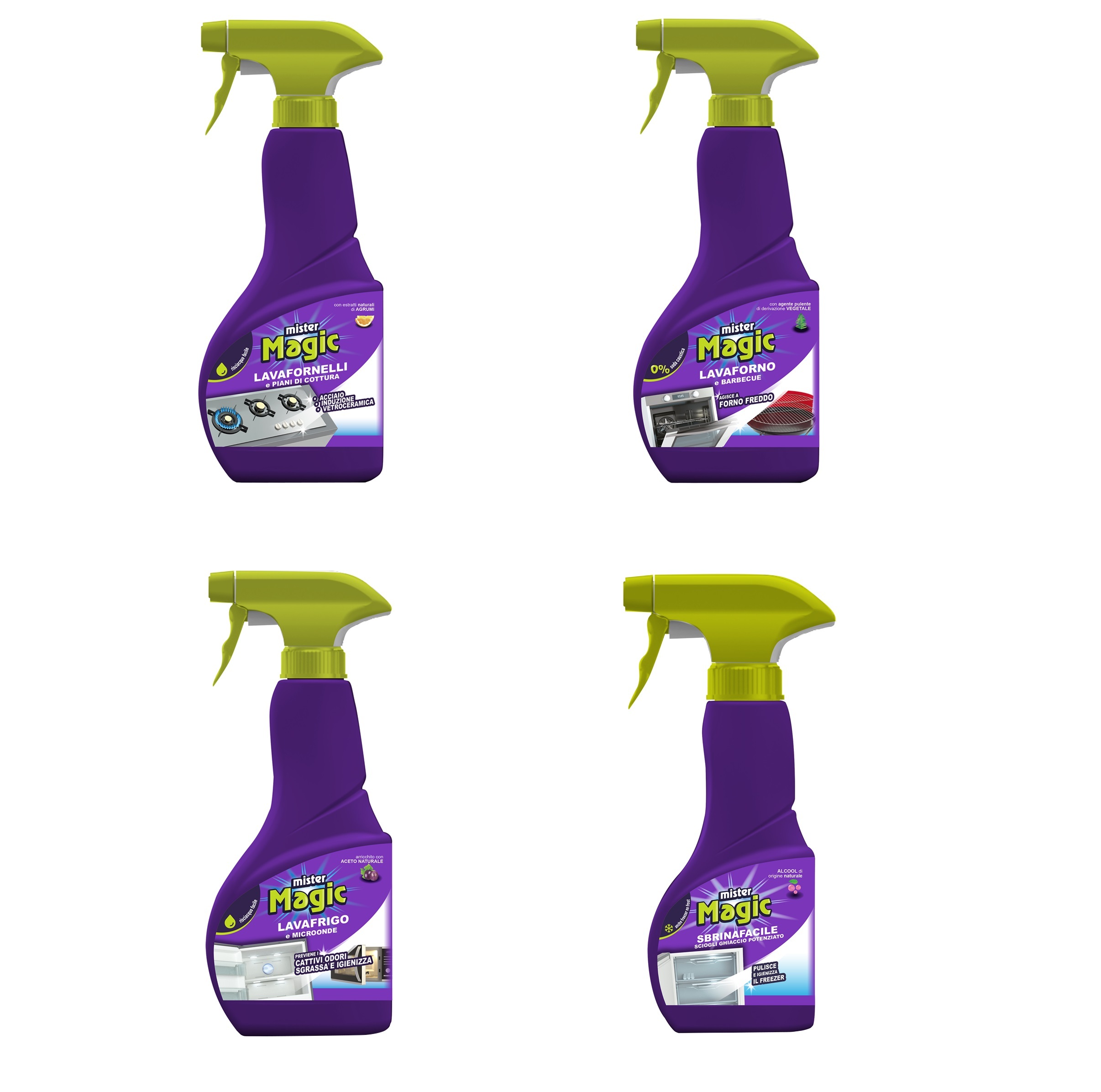Infine, per tutte le altre superfici c’è il multitasking Lavafornelli e piani cottura Mister Magic, che elimina lo sporco più difficile, come il grasso e l’unto, dai fornelli in acciaio inox o dalle più delicate piastre a induzione e vetroceramica. Allo stesso tempo, con un risciacquo facile e veloce, protegge le superfici del piano cucina. È concentrato, perciò sarà sufficiente uno spruzzo e la sua doppia azione sgrassante e igienizzante è assicurata da una formula innovativa con estratti naturali di agrumi e sostanze attive di derivazione naturale.