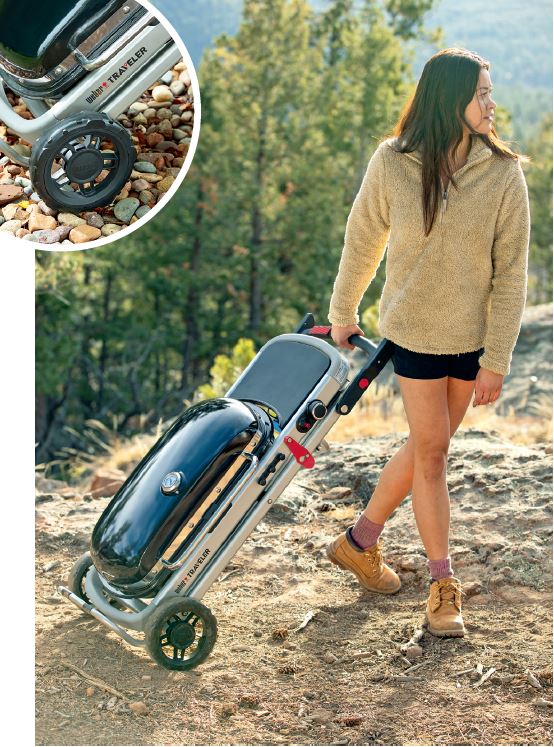 • Efficace sistema di gestione del gas per ottimizzare i consumi di combustibile: è possibile cuocere fino a due ore con una sola cartuccia di gas. Weber Traveler dispone anche di un bruciatore brevettato facile da usare e di un ampio ripiano laterale dotato di ganci portautensili. Infine, presenta un resistente carrello integrato dotato di ruote rivestite di gomma che ne consentono il trasporto su qualunque terreno senza alcuna fatica.
