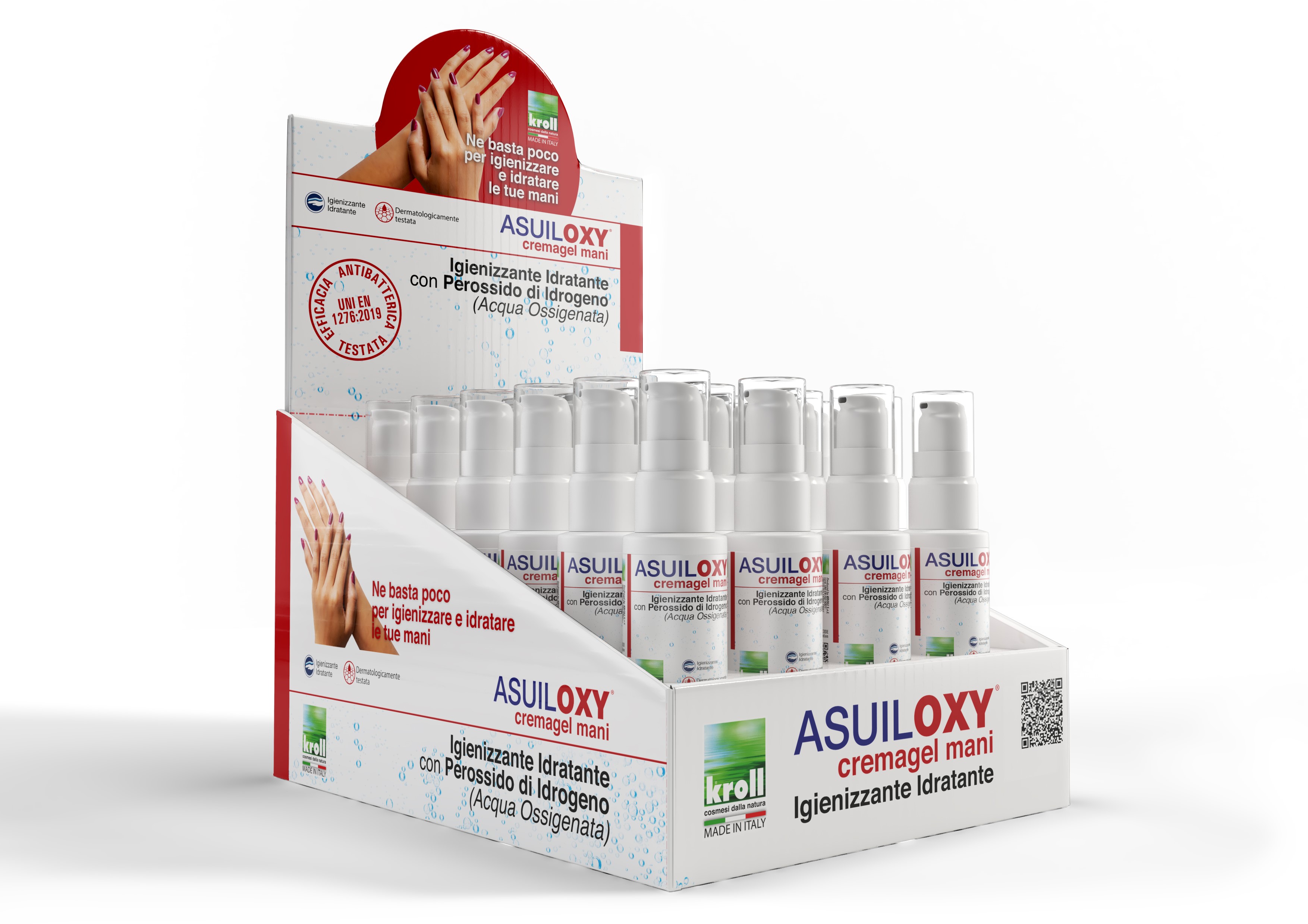 Già nel 1992 Kroll aveva formulato un sapone mani con Perossido d’Idrogeno (acqua ossigenata) che si chiamava ASUINOXIL, ma i tempi non erano