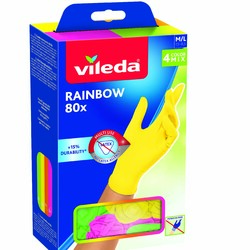 Per chi preferisce o ha necessità di utilizzare guanti monouso - efficaci, confortevoli e di alta qualità – i Vileda Rainbow sono i guanti usa&getta multiuso, anallergici e ambidestri, contraddistinti da un’esplosione di colore. Realizzati in nitrile, non contengono lattice né polveri, e per questo possono essere utilizzati anche da coloro che solitamente soffrono di irritazioni e allergie causate dal lattice. Comodi da indossare e da sfilare, sono molto resistenti grazie al polsino più spesso che limita il rischio di strapparsi. Gli usa&getta Vileda Rainbow garantiscono una vestibilità perfetta, assicurando la massima sensibilità e un’ottima presa per tutti gli usi.
