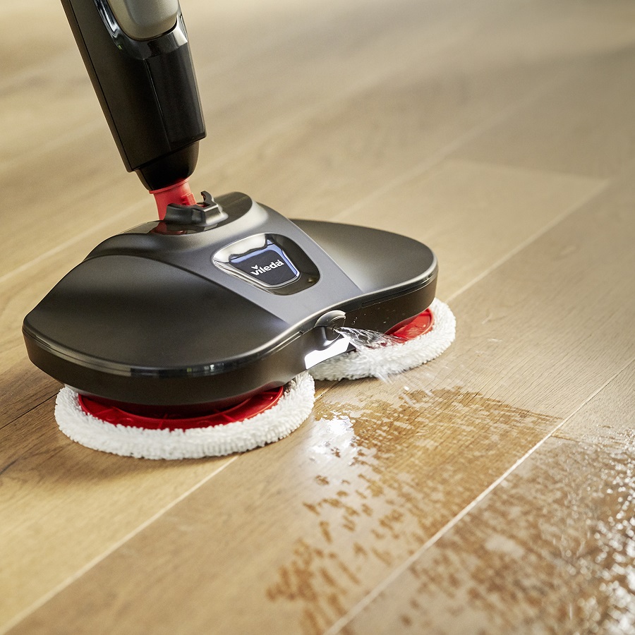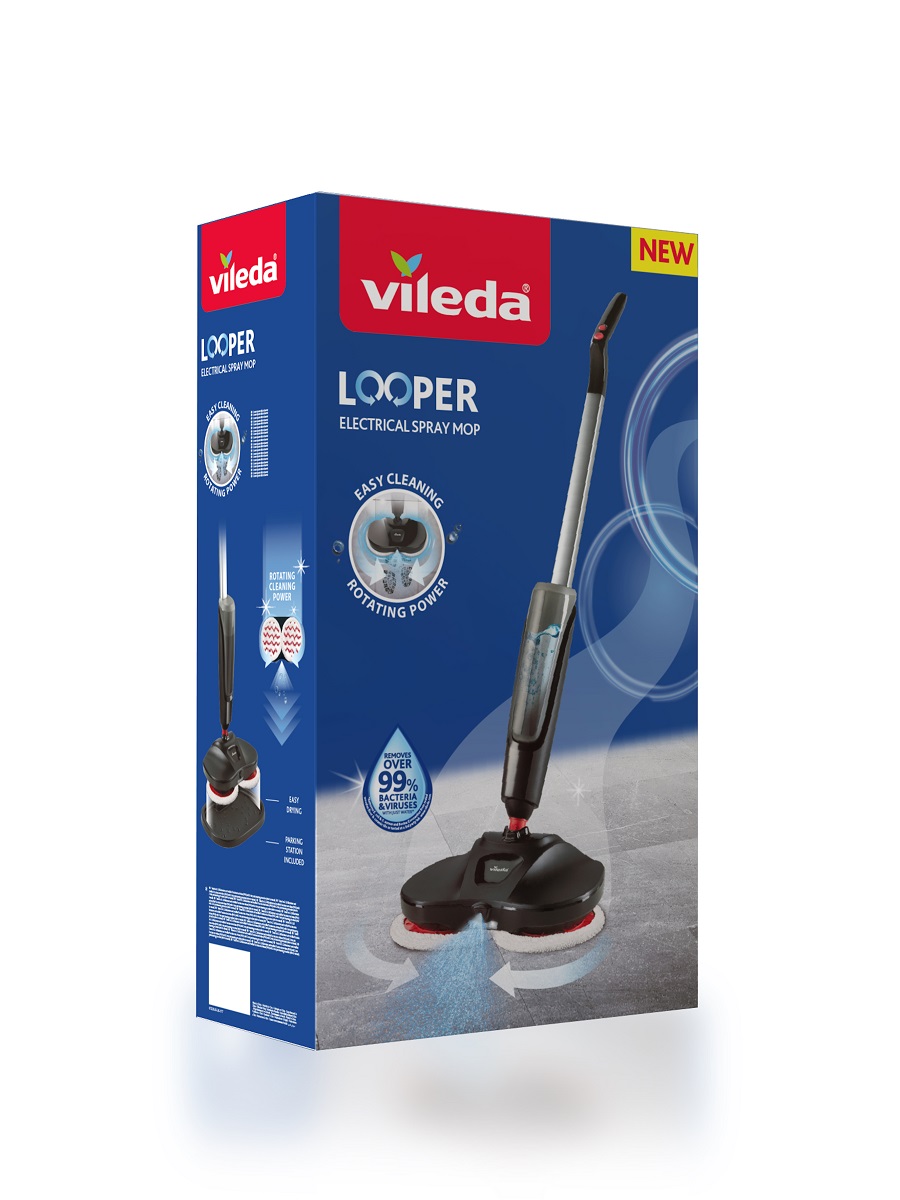 Il nuovo lavapavimenti elettrico Vileda Looper è un sistema spray senza fili dotato di un pratico serbatoio d’acqua integrato, facilmente rimuovibile per il suo riempimento, che assicura elevate performance di pulizia massimizzate dalla rotazione dei due panni in microfibra di altissima qualità che garantiscono la rimozione di oltre il 99% dei batteri e virus* anche solo con acqua, senza l’uso di detergenti. Il getto spray assicura la corretta quantità di acqua desiderata grazie al pratico pulsante sul manico: premendolo più o meno a lungo Looper erogherà il quantitativo di acqua richiesto. Allo stesso modo i panni in microfibra sono ideali per tutti i tipi di pavimento, anche quelli più delicati come il parquet e, grazie alla composizione di due fibre differenti, combinano la capacità assorbente con lo straordinario potere pulente: le fibre bianche assicurano pavimenti brillanti e le rosse, leggermente abrasive, garantiscono una pulizia profonda, rimuovendo anche lo sporco più ostinato, senza danneggiare le superfici. I panni sono riutilizzabili e lavabili in lavatrice fino a 60°, riducendo così gli sprechi rispetto a prodotti usa&getta.