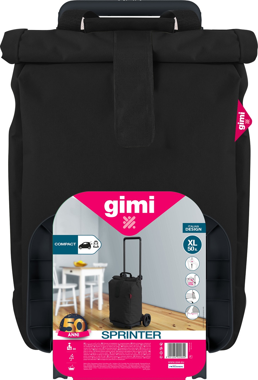 Gimi Sprinter è il carrello portaspesa, con manico telescopico e maniglia in resina ABS, ideale per chi desidera un prodotto che occupi uno spazio minimo, senza rinunciare a una capienza importante; risulta infatti estremamente compatto da chiuso. La sacca in poliestere da 50 l -antipioggia, lavabile e facilmente rimovibile, grazie al sistema “Easy-click” -è caratterizzata dalla versatile apertura estensibile, che consente di adattarsi alla quantità di spesa; inoltre, la tasca interna con zip è ideale per riporre piccoli oggetti. La struttura in acciaio lo rende leggero e facile da manovrare, trasportando fino a 30 kg. Gimi Sprinter è disponibile in due varianti colore: Black Meteorite e Raspeberry Radiant.