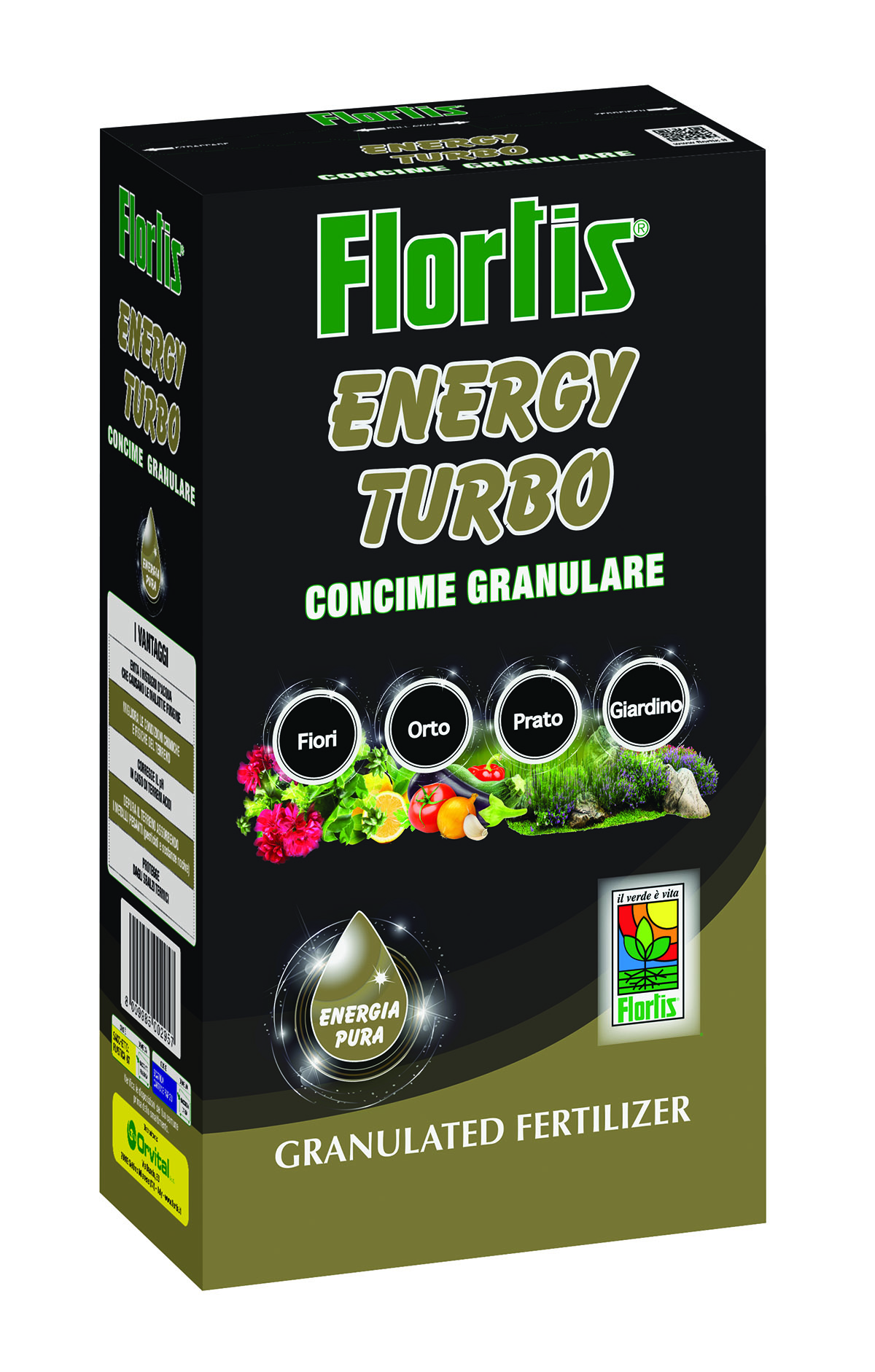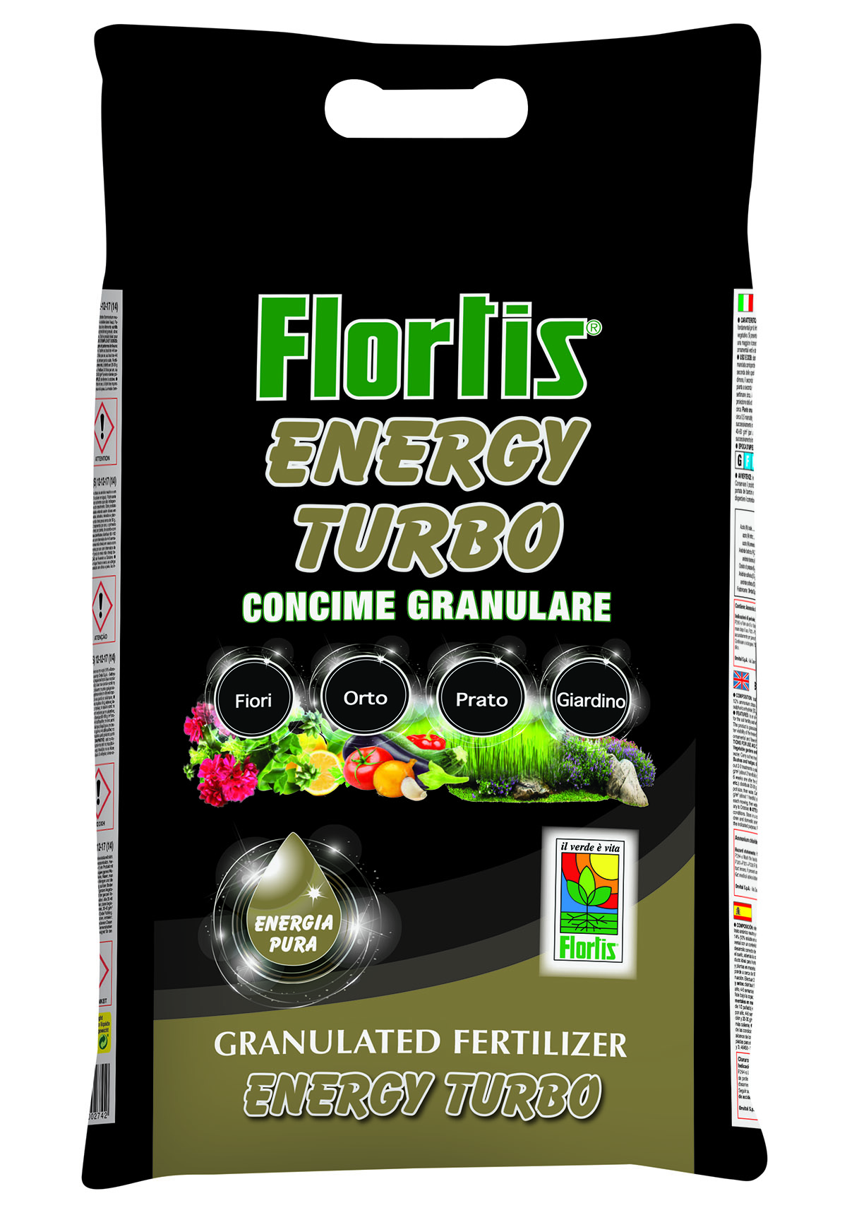 Energy Turbo di Flortis, brand di Orvital, è un concime granulare per fiori, orti, prati e giardini. Una vera iniezione di "Energia Pura" per le piante, grazie alla presenza di azoto organico a pronta azione “turbo”, di sangue secco e di zeolite che permette di ottenere una corretta cessione degli elementi nutritivi dal terreno alla pianta e un maggior controllo del tasso di umidità. La presenza di magnesio, permette di prevenire e curare gli ingiallimenti fogliari, mentre l’alto titolo di zolfo organico favorisce l’assorbimento del fosforo grazie al suo potere acidificante.