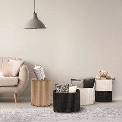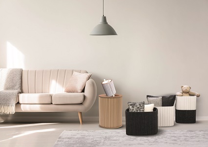 La linea comprende pouf, contenitori, ceste, cestini, lampade, centrotavola e altro ancora.