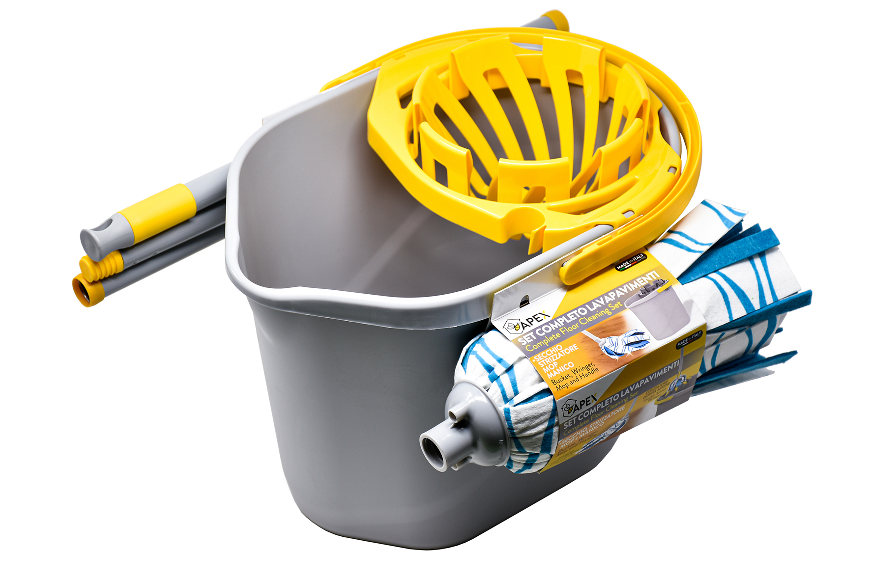 Nuovo set composto da secchio 12 litri, strizzatore a doppia parete flessibile, manico da 120 cm e mop doppia azione.